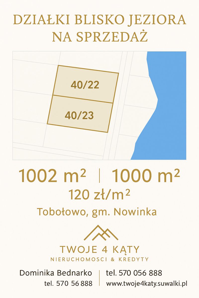 Oferujemy na sprzedaż dwie wyjątkowe działki budowlane położone w malowniczej miejscowości Tobołowo, w gminie Nowinka, powiat augustowski, województwo podlaskie.